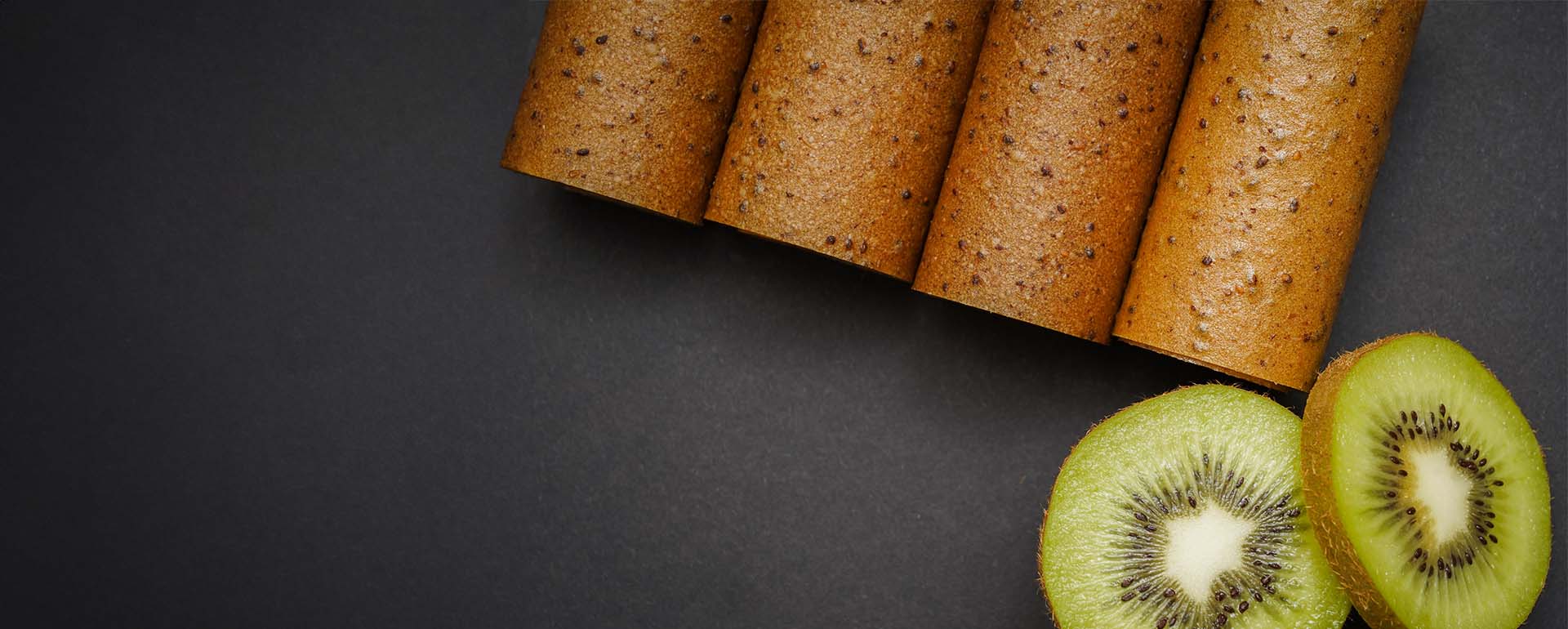 Unsere Fruchtrollen werden aus frischen Früchten und Beeren hergestellt, die zu einem Püree verarbeitet und dann in einem Dörrautomat getrocknet werden, bis sie die Konsistenz von Leder erreichen.