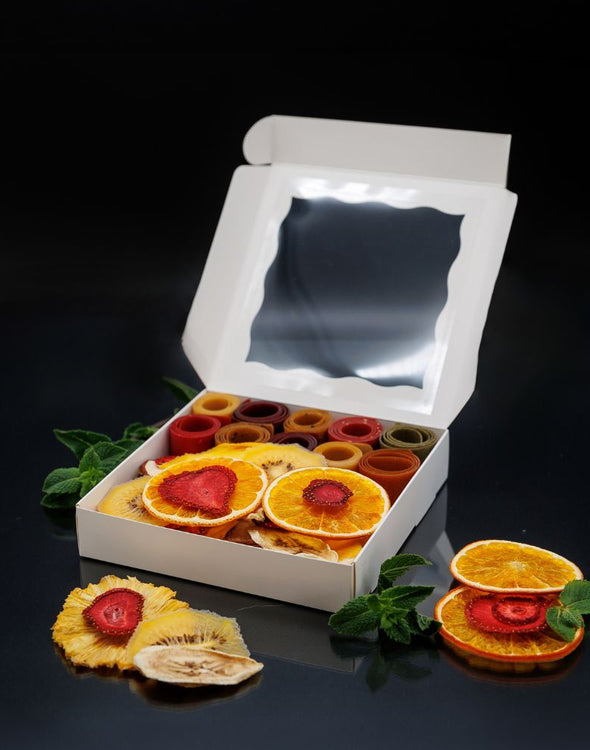 Unsere Produkte stehen für Qualität und Natürlichkeit. Von Fruchtrollen bis hin zu anderen Köstlichkeiten – jedes Produkt wird sorgfältig aus frischen Zutaten hergestellt. Mit 0% Zuckerzusatz und ohne Konservierungsstoffe garantieren wir Ihnen ein reines Geschmackserlebnis.