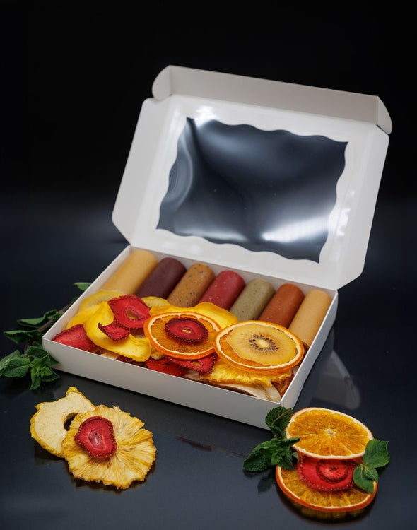 Unsere Produkte stehen für Qualität und Natürlichkeit. Von Fruchtrollen bis hin zu anderen Köstlichkeiten – jedes Produkt wird sorgfältig aus frischen Zutaten hergestellt. Mit 0% Zuckerzusatz und ohne Konservierungsstoffe garantieren wir Ihnen ein reines Geschmackserlebnis.